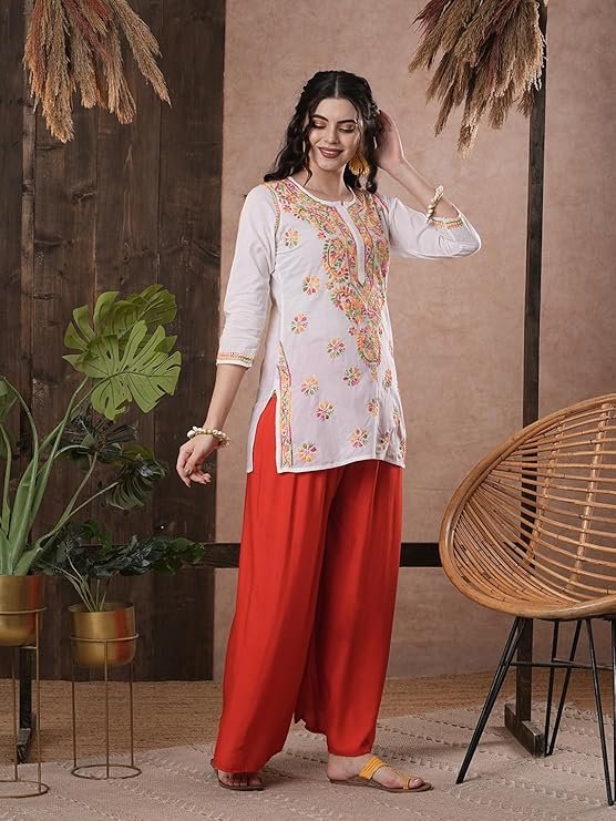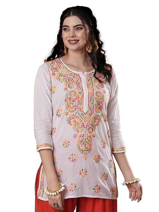 Ada Hand Embroidered Lucknow Chikankari Cotton Suit Tunic Top for Women A225311