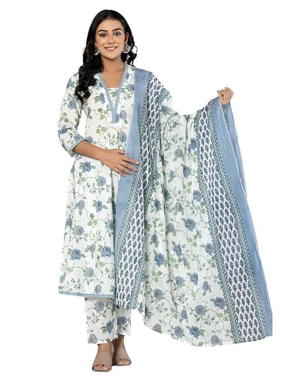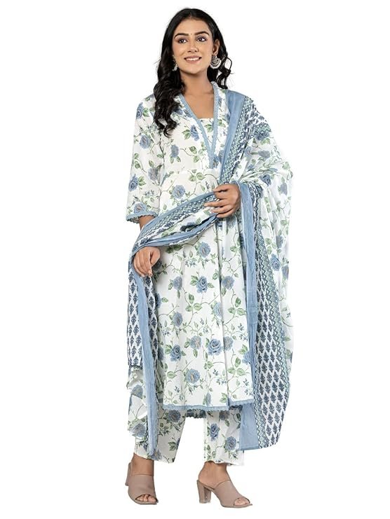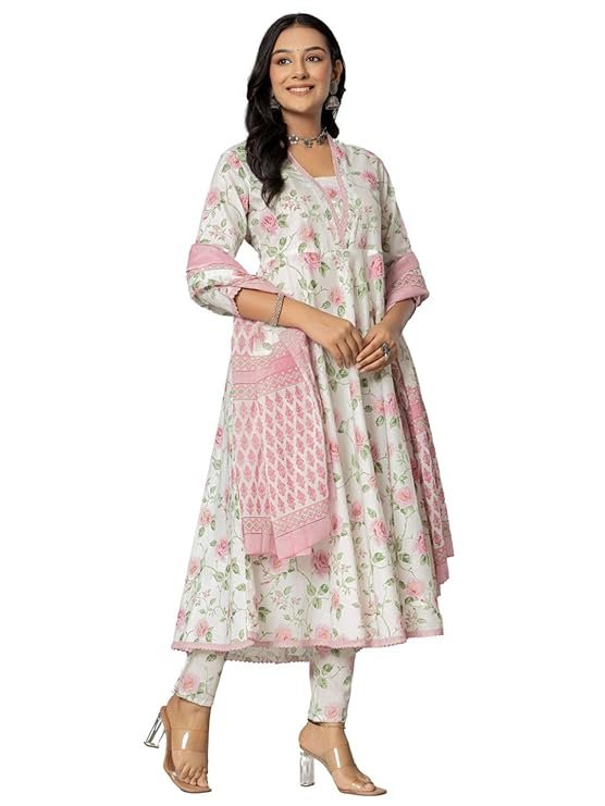 Amayra Women’s Cotton Printed Anarkali Suit with Palazzo Pants and Dupatta