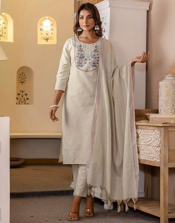 Embroidery and Jacquard Straight Suit Pant with Dupatta Set