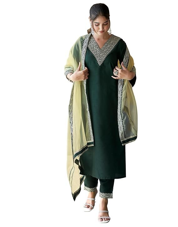 SIRIL Women’s Rayon Viscose Embroidery Straight Suit Pant with Dupatta Set