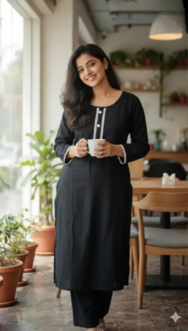 Brighten up your ethnic collection with this cheerful  kurta set. The kurta features a sophisticated geometric weave pattern and a smart buttoned neckline, offering a blend of modern and traditional style. It comes with matching pants and a contrasting silver-striped dupatta with tassel edges, making it an excellent choice for Haldi ceremonies, summer day wear, or casual outings.